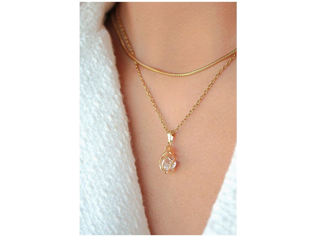 Náhrdelník s přívěskem v kleci ve tvaru kapky – pozlacené 24K zlatem